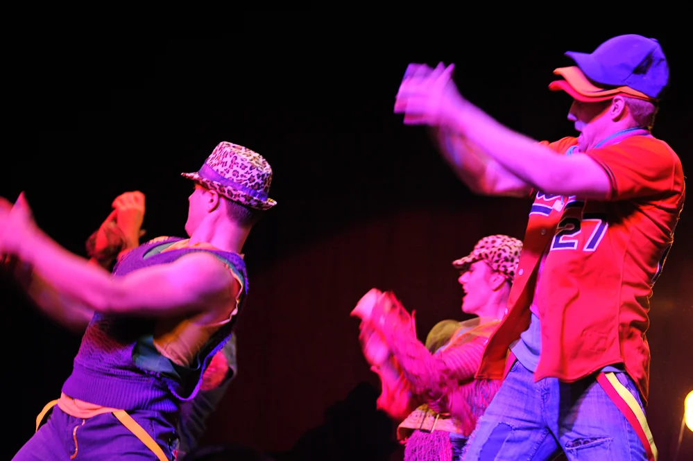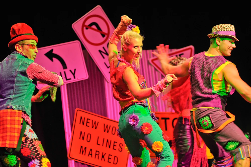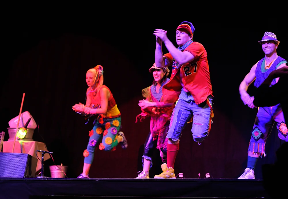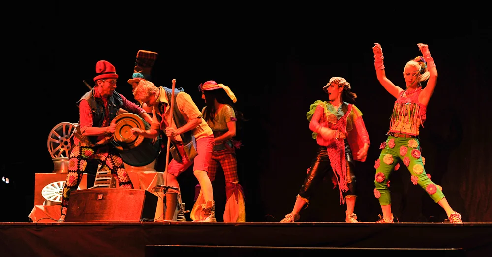 The colourful costumes are retro, recycled and create a sense of joy and energy which is irresistible. The show builds with precise acapella rhythms and concludes with a sensational, high powered swing routine that will have audiences enthralled.