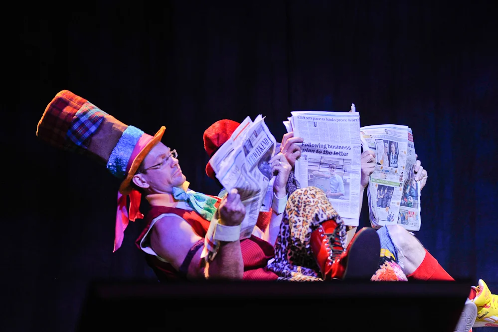 The performance begins with six talented characters entertaining us with eclectic personalities and outstanding tap performances. The scene unfolds with rhythmic newspapers, bike bells and whistles incorporating playful interactions with cast and audience.