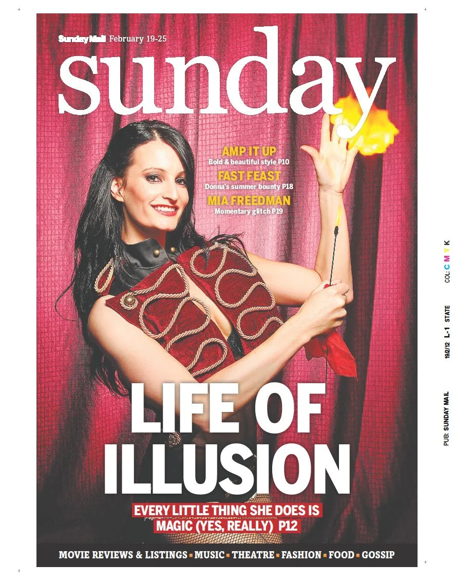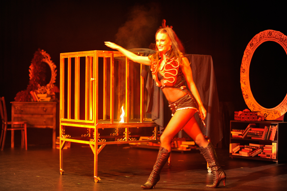 ILLURE features the skewered box, fire cage, metamorphosis illusion, revenge escape, light illusions, compelling vocals, seductive choreography, hand magic and a dash of audience interaction.